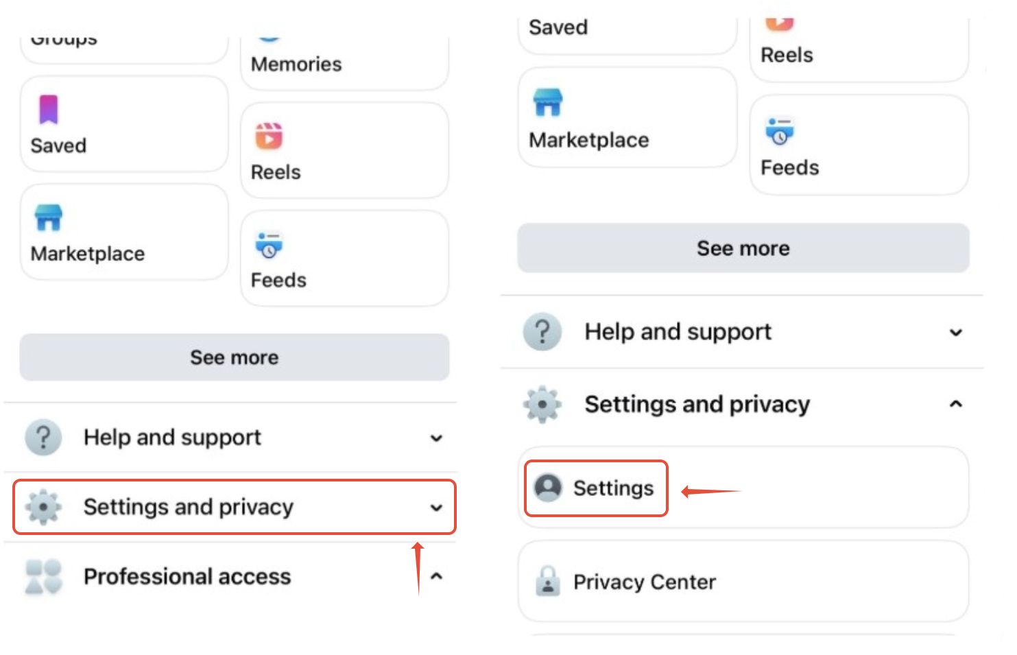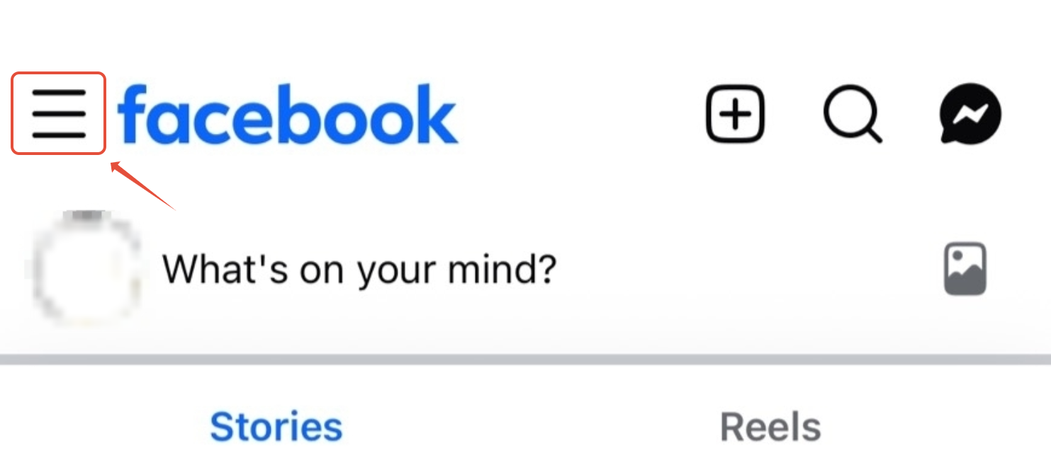 1. Open Facebook and tap the “More” button, represented by a three-line (☰) icon located in the top-left corner, as shown in the image below.