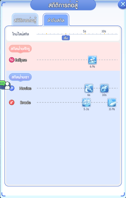 >> กดดูรายละเอียด (สถิติการต่อสู้) > ลำดับสกิล